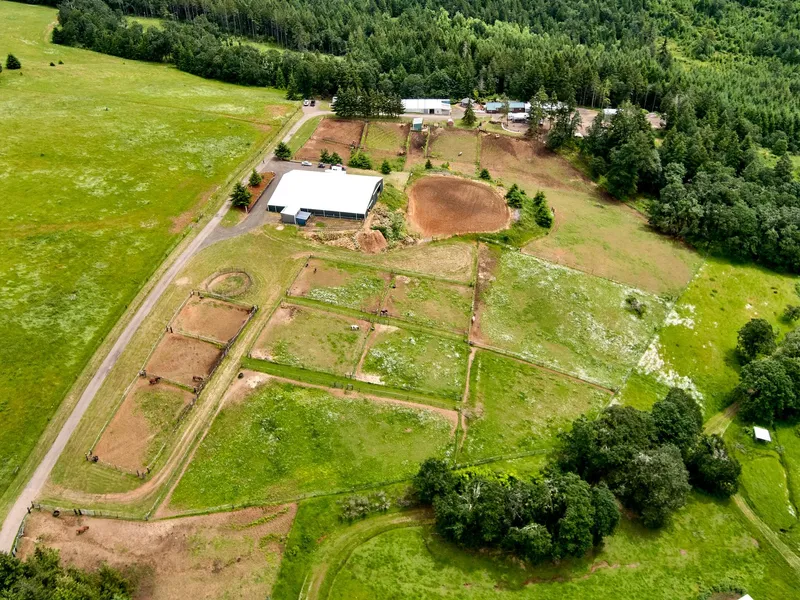 40 acres, indoor arena, outdoor arena, 27+ stalls, fenced pastures, 3 homes, shop, hay storage, trails for riding and hiking, marketable timber and more!