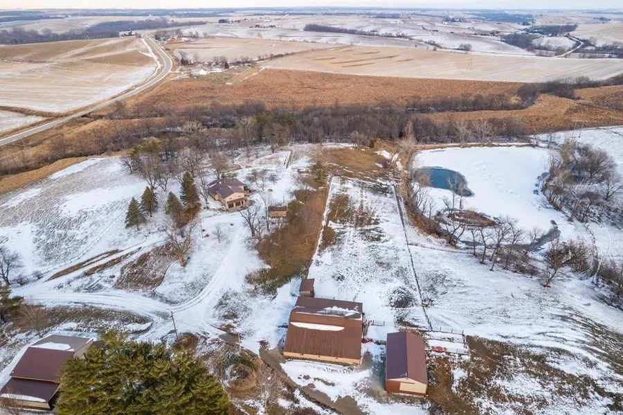 A fully operational 40 +/- acre horse and cattle farm with a 2,600 square foot 4 bedroom, 2 bath house. This property is unique as it gets! A setup like this along with all of the additions and recent upgrades is very difficult to find. The home had a complete exterior remodel in 2018 with new siding, trim, insulation, doors, garage doors, Pella windows, and a stamped and stained concrete back patio with an outdoor kitchen set up and fire pit. Additionally, an indoor kitchen remodel in 2022 with many other renovations/updates over the last several years! In 2016 a new 60'x40' shop was added to the west side of the property and that shop comes insulated, heated, and has its own bathroom, rural water, floor drains, and LP tank. The entire property has both rural water and optional well water. You'll also notice a large 3 acre pond just to the south of the house, that pond has its own aeration system and is stocked with bass, bluegill, walleye, and some carp.