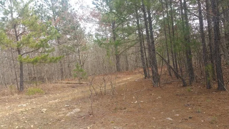 Tall pine, oak and hickory allow one to walk the forest. It's level on top and a slow slope down the draw and up on the next hill. There is a lot to cover on this 40, one can take an ATV ride or on your horse.