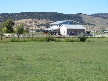 The home on this 40-acre parcel was built in 1987 and remodeled in 1997. Downstairs it has 2 bedrooms, a 1/2 bath, and a full bathroom, the kitchen, and a small living room. Upstairs it has a large family room/living room with great views of the surrounding landscape, and a nice large master bedroom, walk-in closet, and large master bath with shower and steeping tub. There is an attached 2-car garage. Finishes in the home are decent, very livable, but not custom. The property has excellent productive hay fields that grow a nice stand of hay every year with excellent water rights, 45 shares of the Powell Park Ditch. It has a fenced horse pasture and the fields are used to winter cattle. Elevation is 6,300 feet.
