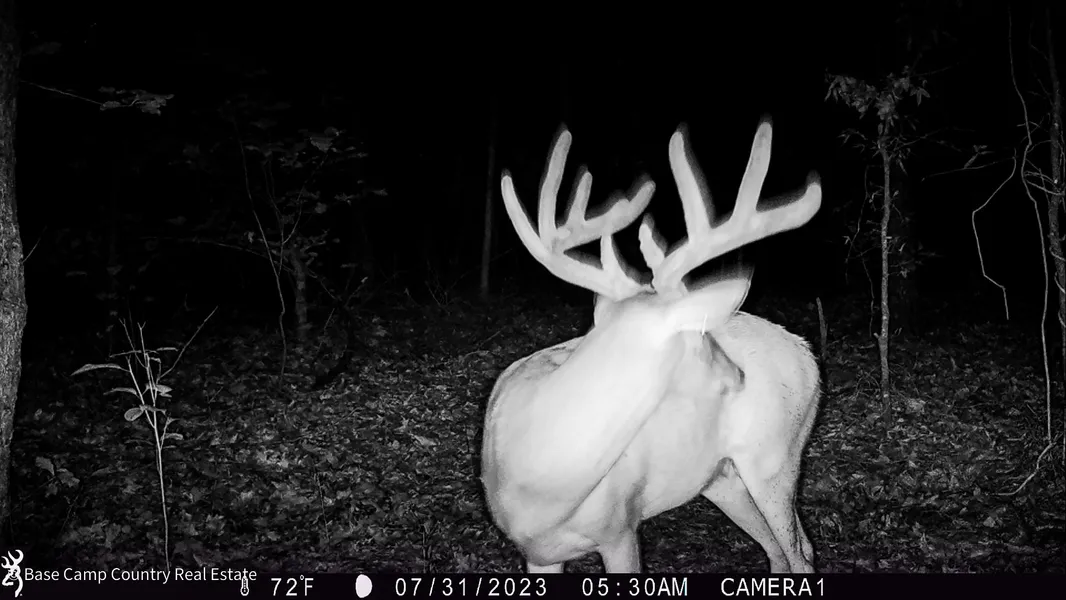 Thick wooded areas with openings for food plots and trail system