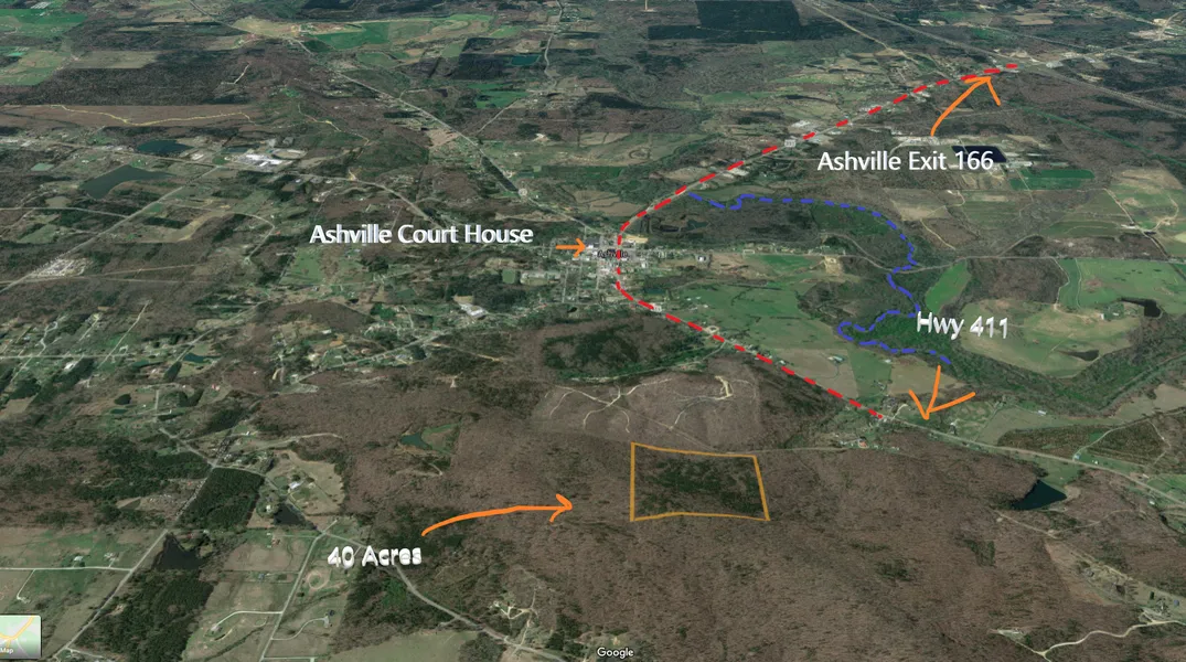40+/- Acres Land For Sale located in Ashville Al. Property is currently land locked. Property is elevated which can offer Mountain Views. Timber hasn't been cut and joins other large tracts of property. Viewing the google map below will give you some idea of it's located. Sits between Montgomery Drive and Turn Road.