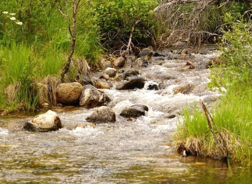 Eddy creek flows into the Shasta River and the majestic Mount Shasta is nearby.