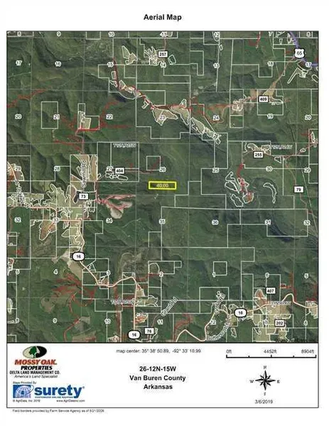 40 Acres +/- of mixed use recreational, timberland, with marketable timber & seasonal creek. The secluded property is located North East of Crabtree in Van Buren County, Arkansas. It is approximately 9 miles West of Clinton, AR 72031. There are opportunities for hunting, bird watching, hiking trails, ATV trails, and equestrian trails. The wildlife consist of whitetail deer, bear, turkey, and numerous small game animals. Call Today !! Mossy Oak Properties Delta Land Management 870-447-2135 or Exclusive Listing Broker Gene Griffith 870-504-0854