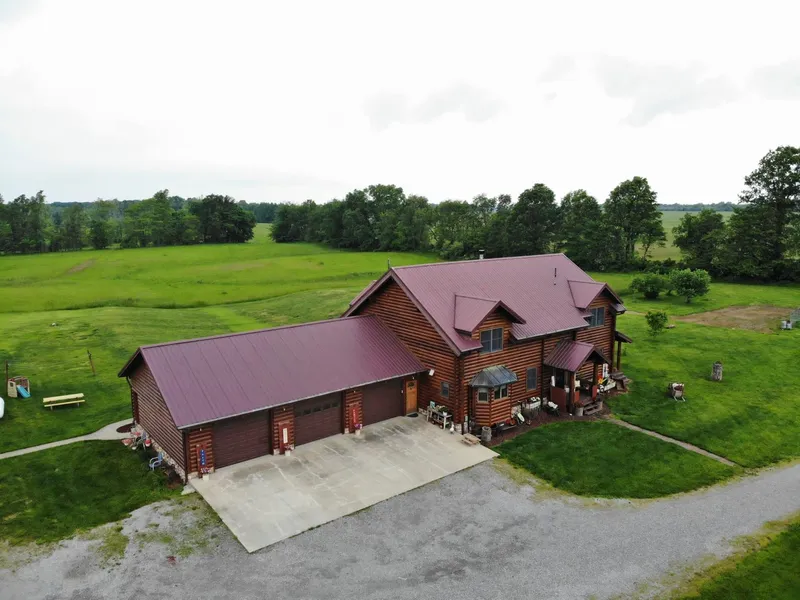 undetected and hunt several different winds. The hidden bonus to the unique property is a couple of older pioneer era homes on the backside of the farm. This is one amazing property where you can live in a beautiful log home with plenty of pole barns for the toys and wood shop, hunting and fishing just outside your door. There is so much more I could say about this home.