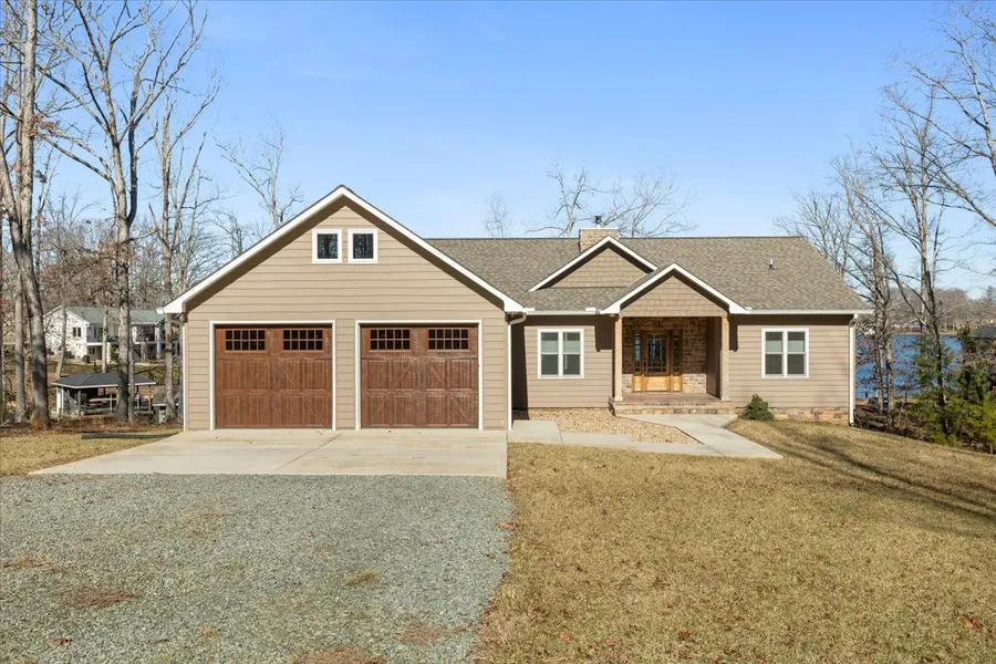 Your private Lakefront oasis! Walk into this fabulous home and view the stunning see through fireplace. This home, built in 2021 by the seller, has both rustic charm and modern elegance. Locally sourced hardwood floors add warmth and character to the spacious living areas. Expansive windows frame breathtaking panoramic views of Smith Mountain Lake, offering stunning sunrises. This home is designed for comfort and convenience. A propane backup generator ensures peace of mind during power outages. Additional insulation means very low utility bills.. This exceptional home boasts a rare natural sandy beach, perfect for sun-soaked days and effortless water access. Imagine launching kayaks, swimming, or simply relaxing by the water's edge. SEE THE ATTACHED APPRAISAL FOR ABOVE LIST PRICE