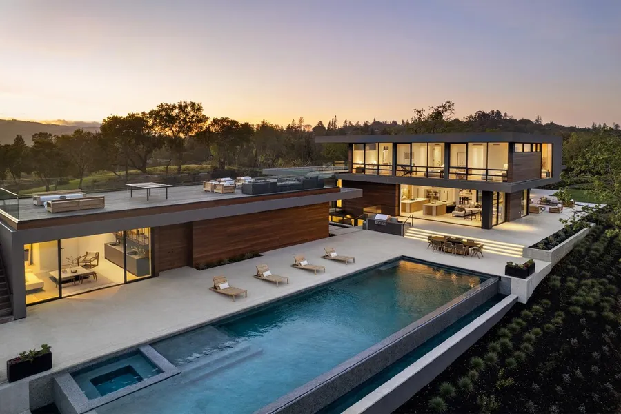 Designed by the renowned architectural firm of Swatt | Miers & completed in 2023 with meticulous attention to every impeccable detail, 40 Firethorn Way resides in a class all its own. This distinctive estate is the ultimate setting for luxurious Silicon Valley living & entertaining. Defined by sweeping 360 degree hillside perspectives, this remarkable residence balances contemporary styling with the natural appeal of its idyllic surroundings. Masterfully constructed with the finest materials, custom finishes & fixtures throughout. Generously proportioned interior spaces with disappearing walls of glass. Private driveway & motor court. Stunning 2-story living & dining with glass curtain wall to broad terrace & infinity pool. Gourmet kitchen with supreme appliances & double islands. Luxurious primary suite with wraparound deck. Lower level rec room, bar, theater & guest suite. Separate ADU. Expansive rooftop deck with views of Windy Hill. Close to Stanford, Sand Hill Road & top schools.