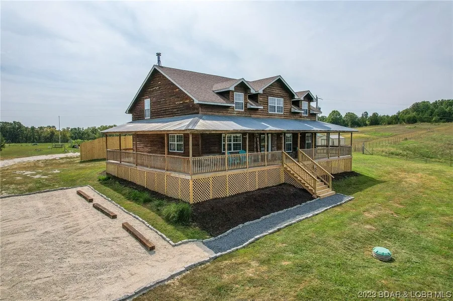 Situated on over 24 acres of rolling countryside, this alluring 4 bedroom, 3 bathroom home has it all. Constructed with American PolySteel from foundation to ceiling, offering value with extreme durability, energy efficiency, and it’s mold & termite resistant! Entering the warm living area, you’ll find soaring vaulted ceilings, new flooring, an abundance of natural light, and a stunning stone fireplace. The main level also has a generous master bedroom, kitchen with large pantry, dining area, mud room, and laundry room. Upstairs has 3 additional bedrooms (one nonconforming, no closet.) Simply relax on the covered front porch, as you take in the peace and tranquility, a great hobby farm. Other exterior features include a spacious 1,264 Sq Ft wrap-around deck, a private pond, plenty of building sites, and a charming 100 yr old barn. Located 15 minutes from shops, in School of the Osage District, and minutes away from the LOZ State Park. Watch the video, then Call to see this today!