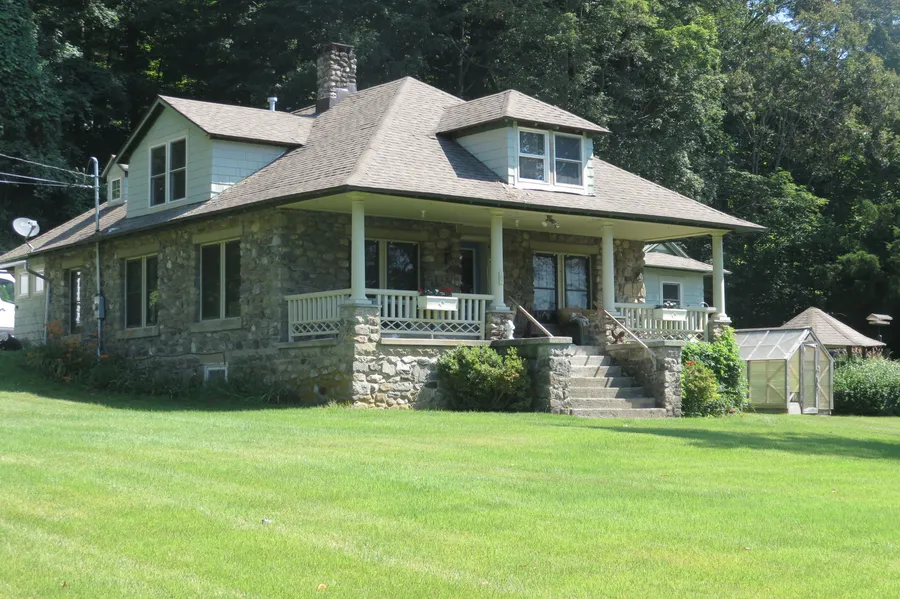 Hardwood floors, built-ins and vaulted ceilings lend charm to the home as does the lovely fireplace in the family room. Kitchen has a breakfast bar. Home sits on a corner, level, wooded lot. Central Air, Garage, over one acre and public water/sewer too!
