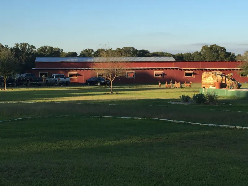 There is a practice race track that can be easily converted to arena. There is an exercise pool for the horses, several resting pens, nice bunk house. There is a hay barn,large chicken coops, and 3 ponds. The home is a nice,big, double wide mobile home with covered deck and car port. It is also nicely landscaped. It has an in ground pool and out door entertaining area and fire pit..