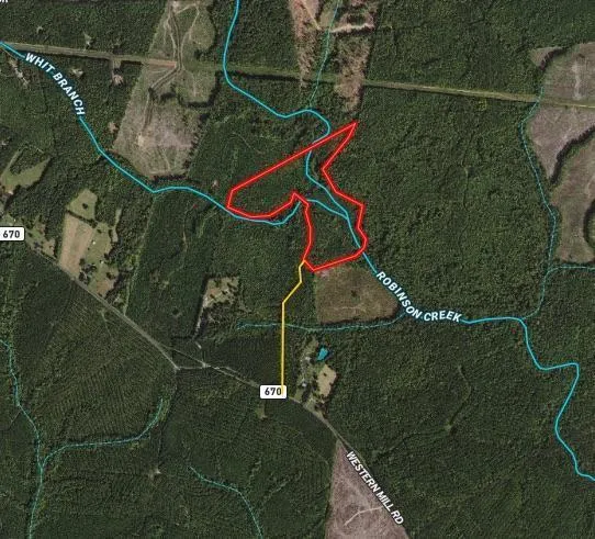 Forty secluded acres approximately a half mile off Western Mill Rd located between Lawrenceville and south Brunswick. The timber was cut sometime ago and it has come up in a thick natural growth providing great bedding and browsing areas for the wildlife. There is an abundance of wildlife from white tailed deer, black bears and small game to hunt. Two creeks, Whit Branch and Robinson Creek, run through the property making a great water source for the wildlife. There are no interior roads for access. You would have to create your interior road system and food plot areas. This would be a great property to turn onto your private recreational or hunting tract.