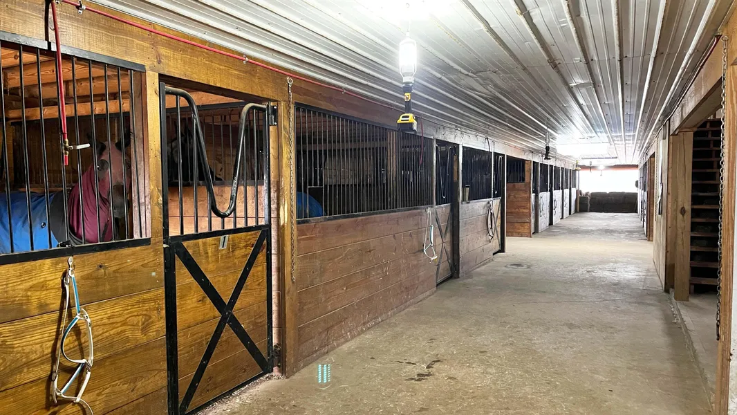 A 94x108 31 built in 2019 box stall barn with concrete and 48x80 shelter on West side. Full