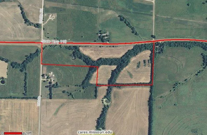 40.55 surveyed acres located west of Cowgill on Hwy 116 in Caldwell Co. 29 acres tillable with $200/acre farm lease for 2013. Asking $3250/acre.