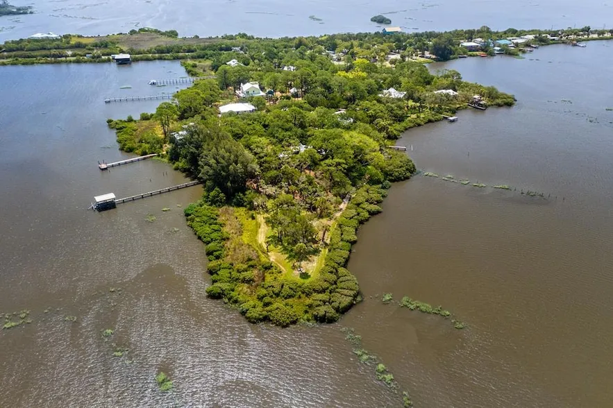 This spectacular parcel, at the end of Sunset Point is pure paradise! With approximately 1.6 acres of uplands, the 40.9-acre parcel also includes a private island of nearly an acre! The PRE-FIRM home that had been nestled among the sprawling oaks, Australian pines, cedars and palms was built on the ground, and was damaged in Hurricane Helene. Only used as a part-time getaway, the owner has decided to sell this unique water-front spot for the next owner to build their own island hideaway. Larger than most all parcels on the island, there is a good possibility the land could be split into two gorgeous homesites, if desired. Build your custom elevated home here and the panoramic salt water view will be outstanding! Sunsets at this beautiful spot--the very POINT of Sunset Point Drive--will not disappoint. Just a couple of minutes drive to downtown food and fun, with water side parks, restaurants, shops, library, coffee shops and bakery--what more do you need? Come and begin your new island life here, taking advantage of what we residents call "Island Time." This relaxed pace of life just may be the joy-filled and peaceful existence you are looking for!