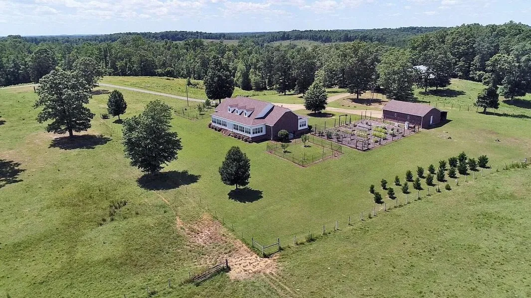 2 fenced orchards w/ blueberry bushes, apple, peach, pear & fig trees