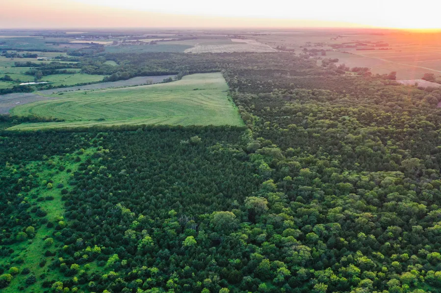 This property is located about a half mile north of the Kansas and Nebraska state line. Wildcat creek borders the property on the north, but there are also ponds and creeks throughout the whole property offering water options for cattle and wildlife. The ground is full of cedar, hedge, walnuts, and massive oaks and cottonwoods along the creek bottom. Be assured there will be great bucks to chase all fall hunting season not to mention turkeys that call the cottonwood trees home. The property has access from State Line road to the south. There are ATV trails through the property to allow for access. This heavily timbered property is the perfect slate to develop it into your hunting dream farm.