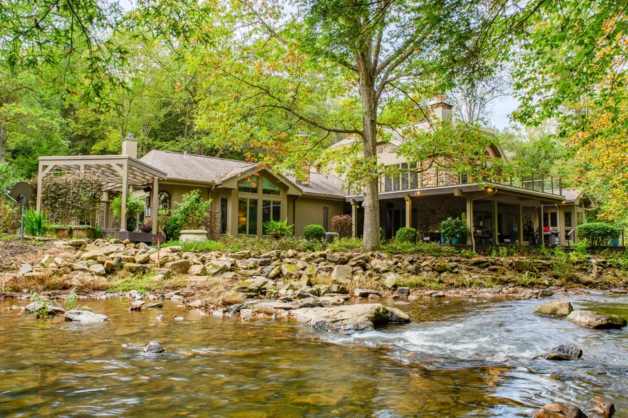Set privately on a wooded 20-acre estate with a flowing stream, numerous horseback riding trails, a two-stall barn and paddock, this secluded retreat offers a stunning architectural design and a lavishly proportioned interior with vaulted ceilings and walls of glass. A signature property located nearby everything The Laurel Highlands and Nemacolin Woodlands Resort have to offer, this unique residence offers hardwood floors in many of the rooms, an open concept, and a serene, pastoral setting. The front of the home includes a private motor court and a two-story entrance foyer; the back of the residence showcases riveting views of a stream and mature hardwoods through numerous windows and French doors. Open and inviting, the great room features a living room with a stone fireplace, a formal dining area with room for an eight-person table, and an elevated morning room with views. The adjacent kitchen is a sleek and attractive workspace, with its butcher block countertops, two sinks and stylish arctic white appliances, including a double oven. A large center island, designer fixtures, and custom cabinets with glass insets add to the appeal. The family room is equally impressive, with its vaulted hardwood ceilings, stone fireplace and built-in wet bar. Designed for grand-scale entertaining, the residence hosts a large view deck, an expansive covered patio with an outdoor fireplace, and three generous secondary bedrooms. Peaceful forest views provide a backdrop for the master bedroom, which boasts an oversized retreat with a fireplace, distinctive volume ceilings and a gorgeous spa-like bathroom complete with pebble stone floors, dual sinks and a walk-in shower that is reminiscent of a five-star resort. Outside, the similarity to Frank Lloyd Wrights nearby Fallingwater is immediately evident, as the positioning of the home and the meandering stream create a soothing, peaceful atmosphere. Situated nearby Ohiopyle State Park and many options for outdoor recreation, such as boating, fishing, horseback riding and hunting, as well as award-winning restaurants, golf courses and shopping centers, this stunning architectural home has the potential to become a treasured piece of real estate for generations of family members. Located only 90 minutes from downtown Pittsburgh, the residence also includes a laundry room with a sink and built-in cabinetry, an attached two-car garage, and a long private driveway.