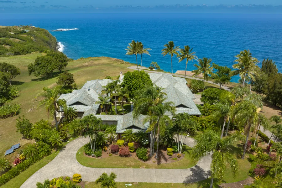 A true North shore estate. 20.5 acres of rolling oceanfront land peerlessly positioned 300 feet above Uaoa Bay. Perfectly sited like no other home, 400 Mehana is an event to experience. This offering includes a primary residence of 5,403 square feet, featuring 3 bedrooms, and 3.5 bathrooms, complemented by an additional separate second home of 1,050 square feet, featuring 1 bedroom and 1.5 bathrooms. Only 12 minutes beyond Mama’s Fish house, a paved country lane leads you to the very bottom of Mehana Road through the private gate. This home has a singular sense of arrival. Upon entry, the generous circle driveway calls you towards the porte cochere with copper-accented entry to a grand walled courtyard. Slate roofs and copper details contrast the bridged koi pond and water lilies. The main entrance greets you with one of the most impressive arrival views on Maui, 180 degrees of blue across your own 1/4 mile of ocean frontage. White and turquoise waves crash against the black lava rocks of Papanui O Kane, an offshore seabird sanctuary island. Epic. The only rooftops are in the distance far across the bay. Complete privacy. A large screened lanai extends the already large living room by way of 24’ fully concealed Fleetwood doors. A newly remodeled Chef’s kitchen and bar (2022) including double islands graced with black India leathered granite. Easy SINGLE LEVEL LIVING is accentuated with multiple indoor and outdoor dining and seating entertaining areas. A reflecting pond pool that doubles as a clean cool water plunge sparkles gently next to your breakfast table as the sun rises from the Pacific Ocean. Newly remodeled office, theater room and primary bedroom and bath with cream quartz counters on sapele cabinets (2023). Two large ensuite guest bedrooms each with private exterior access. Coffered and vaulted ceilings throughout. Slate and bamboo flooring with Douglas Fir details and doors. Owned PV system. Includes both 5/8th” County water meter and newly refurbished well water systems. Fiber optic fed high speed internet service (Spectrum or Hawaiian Tel). Duck ponds. Banana groves. A recently planted edible orchard including avocados, citrus, lychee, papaya and more. Vegetable garden. Fully irrigated landscaping and grounds. Smart Home. Multi-zoned whole-house air conditioning. Hidden oceanfront meadows. 80 foot waterfall and direct access to the ocean and a secluded turtle sanctuary. This purchase includes a second home, the ocean view Ohana that is completely hidden from your view plane providing Caretakers quarters, an ultimate guest space or rental income. Plenty of land and space for equestrian pursuits. There is truly no other North shore property on Maui comparable to 400 Mehana.