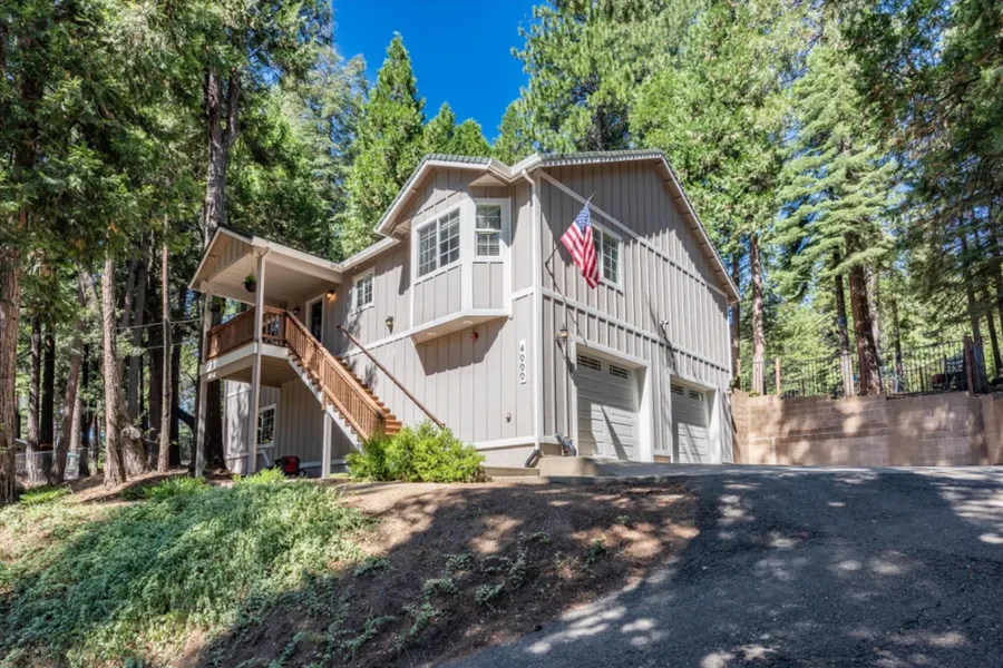 Just minutes from the serene Jenkinson Lake, off-road trails, and vast National Forest land, this home is a dream for adventure-loving families. The oversized garage fits up to 2.5 cars, with extra storage for all your outdoor toysside-by-sides, jet skis, or bikes. Inside, a vaulted ceiling enhances the open living area, perfect for gatherings. Modern touches include recessed lighting, sleek granite countertops, and durable laminate flooring throughout. Enjoy your mornings on the covered front patio, sipping coffee in the crisp mountain air. The fully fenced, low-maintenance backyard offers privacy and shade, ideal for evenings under the stars. Whether as a permanent home or a vacation retreat, this property has it all. Plus, a large family room/home theater, bathroom, and a fourth bedroom add up to 733 square feet of versatile living space. Don't miss this opportunity to create unforgettable memories in your new home!