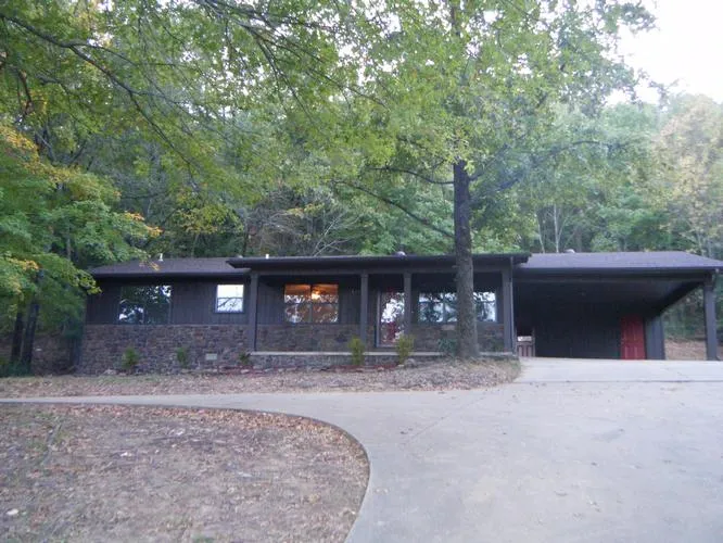 A wooded hillside oasis is home to this like new 3BR, 2BA contemporary property w/ modern finishes & a warm inviting feel. The front covered porch is perfect for relaxation. An intimate patio area is off the back of property below a canopy of trees. The cooks kitchen has lots of granite work space, is fully equipped w/ stainless steel appliances, & has a breakfast bar. Located between the dining and kitchen is a wood burning fireplace. Just beyond a large sunroom overlooks the hillside. Granite extends to the main bath. The master is spacious, has a beautiful view of the property, and a custom tiled shower. Additional amenities include a large laundry room, lots of storage, a wood stove, & storage building. The home has been completely remodeled from head to toe. Call today to schedule your personal tour.