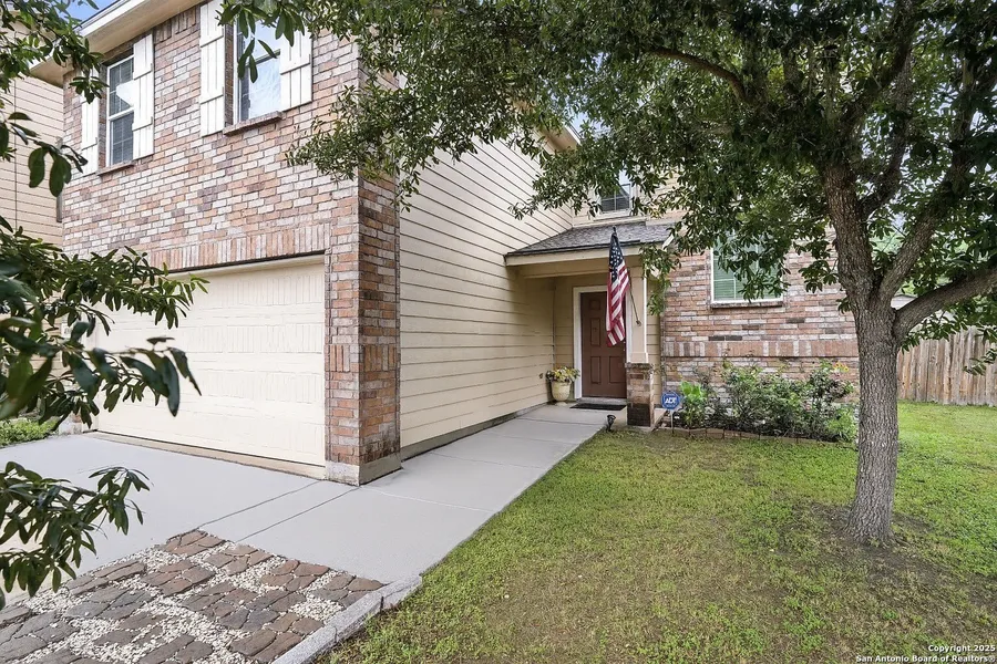 Discover this beautifully maintained 2-story brick home featuring 3 spacious bedrooms and 2.5 bathrooms, located inside Loop 1604. Built in 2014 and thoughtfully upgraded over the years, this home offers both modern comfort and timeless appeal. Step inside to an inviting open-concept layout that seamlessly connects the kitchen, dining, and living areas-perfect for everyday living and entertaining. The lower level boasts durable and stylish laminate flooring throughout, while a versatile flex space is ideal for a home office. Each of the three generously sized bedrooms includes its own walk-in closet, ensuring ample storage and privacy for all. Outside, enjoy the serene backyard with an extended patio surrounded by mature trees-your own private retreat for relaxing or hosting guests.