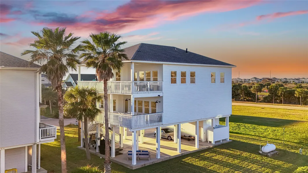 Nestled just two blocks from the Gulf, this exceptional beach house offers breathtaking views and a rare investment opportunity. Meticulously maintained and never rented, it comes mostly furnished and ready to enjoy. Spanning 2,911 square feet, the home features 4 bedrooms, 3.5 baths, and open design with abundant natural light. Two primary suites on the second floor boast wood floors, walk-in showers, and double sinks, while secondary bedrooms accommodate guests with bunk beds, full bed, and trundle. Entertain effortlessly in the expansive game room with a built-in wet bar and ice maker or in the chef’s kitchen with stainless steel appliances. Outdoor living shines with two spacious decks for lounging or enjoying sunsets. Ground-level entertainment includes an EV hookup, outdoor shower, and ample parking. Built with high-impact storm windows, foam insulation, and on-demand water heater, this home offers energy efficiency and low flood insurance. Gulf breezes and beachside bliss await!