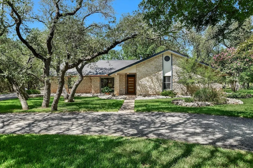 Tucked away at the end of a quiet cul-de-sac in Georgetown s desirable Serenada neighborhood, this beautifully renovated 1-acre property offers modern style, character, privacy, and a prime central location with no HOA and low county taxes. 2-car attached garage PLUS oversized 1-car detached garage! Surrounded by mature trees, the home features updated windows and doors, tile flooring, vaulted ceilings with wood beams, and stylish lighting and plumbing fixtures throughout. The open floor plan includes a spacious living room with a fireplace, while large windows and sliding glass doors provide abundant natural light, offering views of the front and back yards, where deer often roam. The show-stopping kitchen features upgraded quartz countertops, abundant cabinetry and storage, under-cabinet lighting, a pot filler, and stainless steel appliances to include a built-in wine fridge and ice maker. The generously sized primary bedroom features patio access, built-in storage, and dual walk-in closets. Spacious secondary bedrooms each have a walk-in closet, and the recently renovated secondary bathroom features a double vanity with quartz countertops and a beautifully tiled frameless glass shower. Outdoor living is exceptional, with a newly added covered patio featuring a vaulted tongue-and-groove wood ceiling and a built-in stone kitchen with granite countertops and sink. The uncovered patio area with a built-in gas fire pit provides additional space for dining, relaxing, or entertaining. The detached garage is heated and cooled with a mini-split and is perfect for a workshop, hobby area, or extra living space. A full irrigation system helps maintain the lush, private backyard, creating a true outdoor oasis. Additional upgrades include surround sound, a new roof (2022), tankless water heater, R/O water filter system, and water softener. With modern amenities, a park-like setting and easy access to shopping, dining, and major roadways, this home truly checks all the boxes.