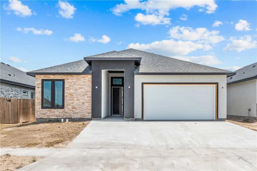 Welcome to 4014 Talbot Drive, a single-story new construction Jade Home located in the desirable Southside area of Corpus Christi. The exterior makes a bold first impression with stone accents, wood-style details, and dark trim for standout curb appeal. Inside, this 4-bedroom, 3-bathroom home includes a private study-perfect for a home office or flex space. With 10-foot ceilings, custom floor-to-ceiling cabinetry, and an open-concept design, the layout feels bright and functional throughout. The kitchen features quartz countertops, a large island, butler style pantry, and upgraded appliances including a 36" gas cooktop and double ovens. The primary suite offers dual vanities, an oversized walk-in shower with a built-in bench, and a spacious walk-in closet with built-in dressers. Out back, an oversized covered patio provides the perfect spot for relaxing or entertaining.