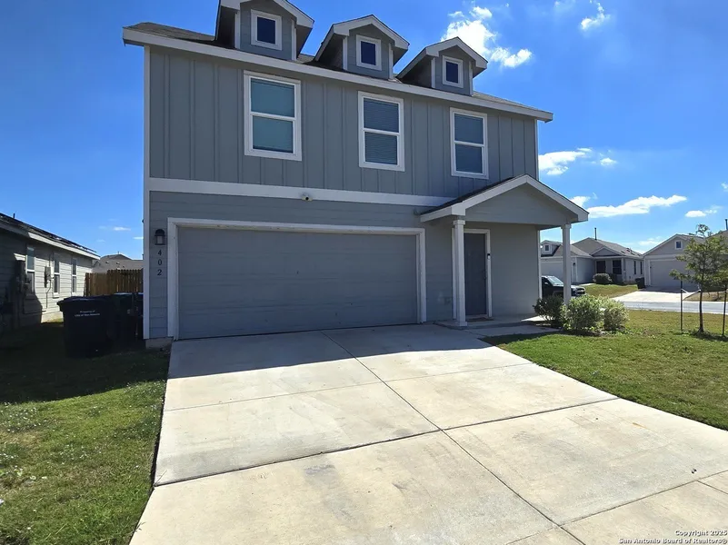 Welcome to 402 Filibusters Trail, a beautiful 2023-built home nestled on a desirable corner lot in the sought-after Rosillo Creek community. This spacious 4-bedroom residence combines modern design with everyday comfort, featuring an open-concept layout with a bright family room and a large upstairs gameroom loft, perfect for entertaining or relaxing. The stylish island kitchen boasts granite countertops, a gas cooktop, and stainless steel appliances, with the refrigerator conveying for added convenience. Energy efficiency shines with a tankless gas water heater, while the 2-car garage with an automatic door opener adds practicality and ease. Move-in ready and thoughtfully designed, this home blends elegance, efficiency, and family-friendly living in one perfect package.