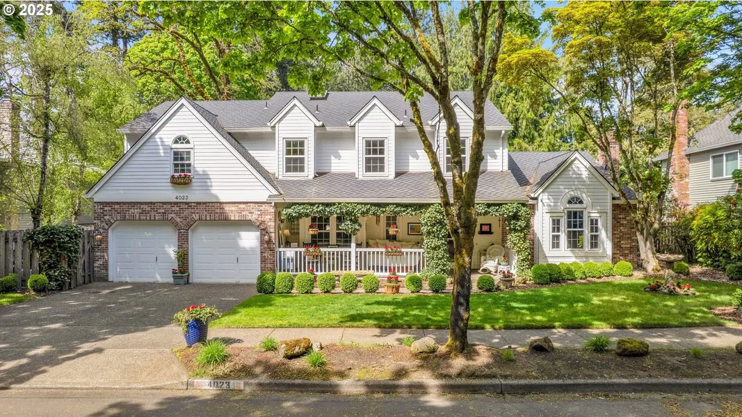 Welcome to your storybook home nestled in one of Lake Oswego's most sought-after neighborhoods! Thoughtfully maintained and full of timeless charm, this 4-bedroom, 2.1-bath traditional offers spacious living, modern updates where it counts, and incredible access to top-rated Lake Oswego schools, parks, shopping, and dining as well as exclusive lake access. Step inside to find brand new hardwood floors throughout and sun-filled living spaces framed by custom millwork, large windows, and cozy fireplaces. The inviting kitchen features a farmhouse sink, butcher block island, and stainless appliances, blending classic style with everyday functionality. Major system updates include a 2007 roof, state-of-the-art windows (installed 6 years ago) for energy efficiency, a 2015 furnace, and a 2015 smart thermostat - offering peace of mind for years to come. Upstairs, the oversized primary suite features a sunny bay window seating area and generous closet space. The primary bathroom is spacious with a soaker tub and walk-in closet. Outside, the private backyard oasis is perfect for entertaining, with brick patios, garden beds, and lush trees providing a peaceful setting. Relax on the covered front porch surrounded by charming ivy and mature landscaping, or gather around in the lush backyard for cozy evenings under the stars. Located just minutes from Lake Oswego's vibrant downtown, award-winning schools, swim parks, coffee shops, trails, and boutique shopping. Easy access to I-5 and 217 makes commuting a breeze. Move-in ready with curb appeal, character, and low-maintenance living - this home offers the perfect blend of lifestyle and location. Welcome home!
