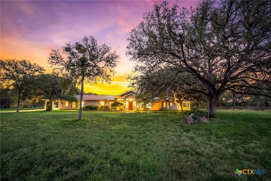 Exquisite Custom Ranch Retreat nestled on 44.679 Oak-Studded Acres. A rare and remarkable offering At the heart of the property sits a beautifully appointed 3-bedroom, 2.5-bath open-concept ranch-style home, with Saltillo tile floors designed to offer both durability and style. Constructed with steel framing and roof that was replaced just four years ago, the home promises enduring quality and low maintenance for years to come. Set well back from the road amidst a grove of heritage oaks, this stunning home defines privacy and tranquility. Currently utilized as a horse property and once the site of an idle cutting horse training ranch, the estate boasts extensive equestrian facilities, including an arena with pipe fencing and customizable paddle panels, a six-stall horse barn with bathroom and shower, a tack room, cross-fencing for pasture rotation, and a well-lit arena for evening riding and training. The land itself is a haven for wildlife, benefiting from a current wildlife exemption that attracts deer, birds, and native species throughout the changing seasons. Also equipped with a dedicated shooting shack. Conveniently located between San Antonio and Austin. Approximately 70 miles either way. Schedule your private tour today and discover firsthand the blend of luxury, nature, and equestrian excellence that defines this unique offering.
