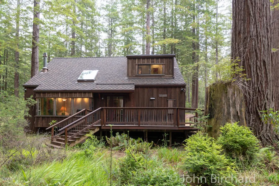 This distinctive home nestled in the midst of stately redwood trees is ready for your enjoyment of life on the Mendocino Coast. 2 bedroom 2 bath home that was lovingly restored with quality features between 2010 and 2013. Exquisite Brazilian Ironwood decking in the front and back entry. Wood and drywall interior,slate like porcelain tile and wood flooring, kitchen back splashing that augments the granite counter tops. Vermont Casting wood stove with the catalytic converter feature keep the home warm and inviting. New Bryant 96% efficient propane furnace, installed in 2013. Radiant heat under tile flooring in both bathrooms. Dual paned Milgard windows throughout in 2013, with the exception of the beautiful stained glass windows in the bathrooms.