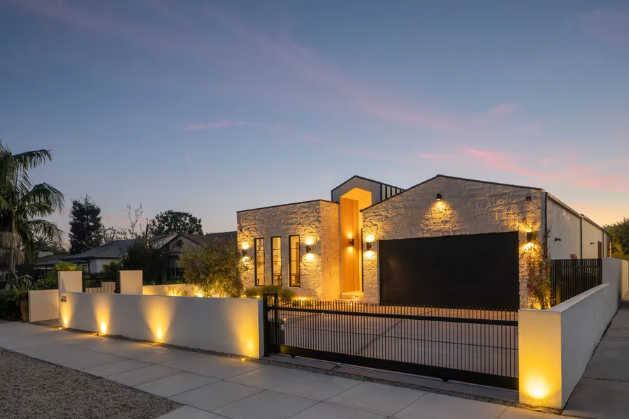 Fazeli Homes presents a luxury, bespoke residence in Mar Vista's coveted Oval set along a wide palm-lined street, this newly built custom home blends volume with sophisticated design. A gated entry leads into a dramatic 14-foot lime washed vaulted foyer and a breathtaking great room beneath soaring 15-foot cathedral ceilings. The chef's kitchen features custom-paneled Thermador appliances, double bullnosed Perla stone counters, an XL walk-in pantry, flowing effortlessly into a dining area framed by a bold ledger-stone accent wall and a fire sided living room complete with built-ins, and expansive sliding glass doors. An extension of the home itself, the backyard boasts a barbecue island, outdoor dining, and a covered fireplace lounge, all set against a lush backdrop of mature ficus providing complete privacy. Privately positioned at the back of the property, the primary suite provides a serene escape with its spa-inspired bath, large walk-in closet, and intimate fireplace. Complementing the primary suite are three en-suite bedrooms each with smart toilets, a showpiece Roman clay enclosed powder room, a multi-zone Sonos system, a gated entry with intercom and camera, a seven-camera surveillance system, and an oversized garage with EV charger. Ideally located moments from Mar Vista's boutiques, dining, and the coast, 4029 East Blvd is a rare blend of craftsmanship, elegance, and modern living.