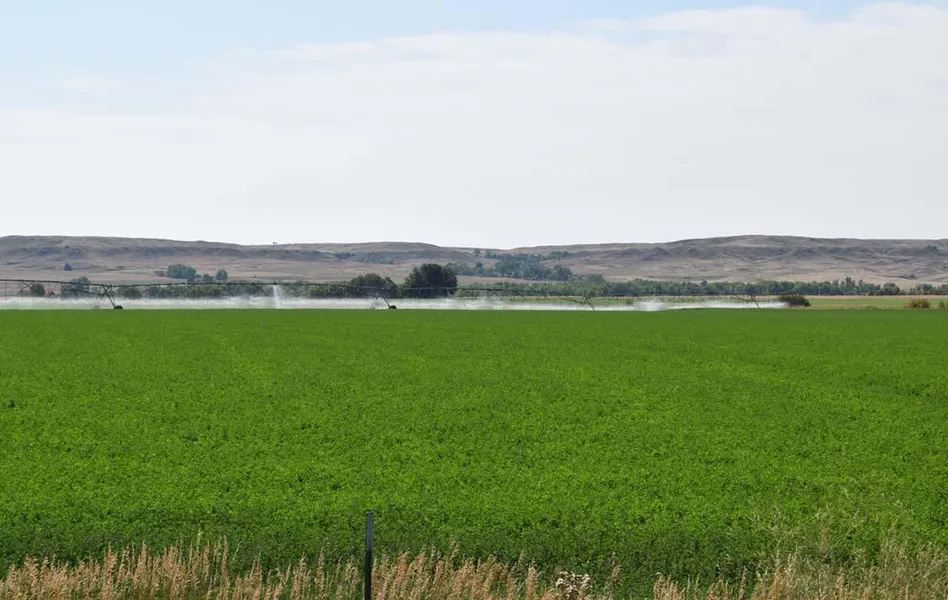 Located 20 miles southwest of Glendive, MT, just off I-94 this 403+/- acre property features 350+/- irrigated acres of which 290+/- acres are irrigated by 4 pivots and the balance is irrigated by gated pipe. The irrigated acres have all been planted to Roundup Ready Alfalfa in 2016 and 2017. Irritation water to the property is supplied from the Buffalo Rapids Irrigation Canal via tow floating pumps (one variable speed and one fixed speed) which are manifolded together to maximize efficiency and reliability. Improvement consist of a 3 Br 2 Ba home with a full basement, a small barn and 3- 5,000 Bu. Grain bins. PRICE $1,335,000.