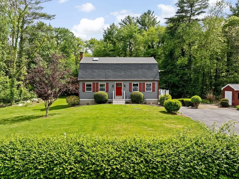 This absolutely stunning, meticulously maintained Gambrel Cape, is nestled among acres of lush conservation land. Sunlight fills the updated kitchen w/granite counters & SS appliances, which opens to a window-lined den area w/sliding door leading to the well-maintained deck, overlooking the privately fenced in yard, perfect for entertaining! The spacious living room & coastal-chic dining room, complete with built-ins & a cozy fireplace, shine with character. Upstairs features 3 spacious bedrooms along with a bright & airy bathroom. Gleaming hardwood floors throughout & fine architectural details add to the home's warmth & charm. The 4th bedroom, located in the partially finished lower-level, offers a versatile living space. Move right in condition w/many recent upgrades including the roof 2023, solar panels, septic 2020, oil tank 2020, kitchen counters 2023, mini split/ heat pump on 1st level, paint 2025, & more! Convenient location near town center!