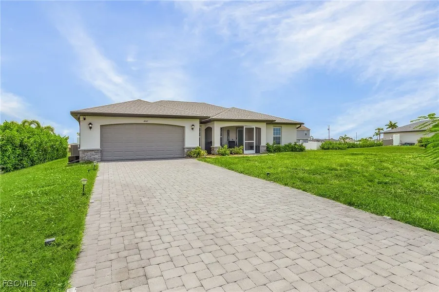 Welcome to this gorgeous home nestled in the tranquil NW Cape Coral. This beautifully designed residence offers the perfect blend of luxury and comfort, featuring 4 spacious bedrooms and 2 bathrooms. There is plenty of room for the whole family to relax and unwind. Pride of ownership is shown throughout the house.. The spacious living room leads to a large covered lanai to enjoy the SW Florida lifestyle! Features Include: Concrete Block Construction and Wood Frame Interior, Under Truss Lanai, Lenox 15 Seer high-efficiency AC system, Moen plumbing fixtures, Dimensional Shingles, PGT Low E Insulated windows, 36" upper cabinets with soft close doors, Granite Counters in Kitchen and Bathrooms, Stainless Steel Kitchen appliance package, colonial style raised panel doors, Electric garage door opener, 18" tile flooring in main living areas, Stone Accents on front elevation of the home, irrigation system, epoxy coated garage floors, upgraded to paver driveway. The home was built in 2021 so everything major has been updated. The kitchen and Bathroom are well-maintained. The home is within minutes from the beach, Great schools, and restaurants Schedule a Showing to See it Today!
