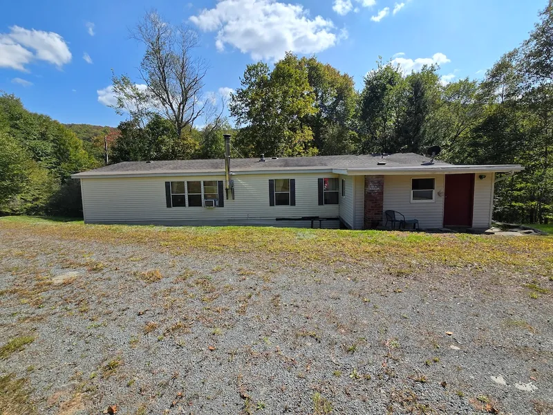 Ideal hunting camp or year-round home, fully furnished and ready for the outdoorsman! Great opportunity to own this attractive and comfortable double-wide mobile home built in 1988 with 1960 square feet of living space inside and a spacious covered porch for relaxing and entertaining outdoors. The house features three bedrooms, two baths, and an open layout in the living room leading to the kitchen and dining area. There is a wood stove in the living room, providing cost-effective and efficient heat, as well as a propane furnace backup. A detached garage and a second storage shed provide ample room for a vehicle and/or storage for your equipment. The land features diverse terrain, with small bowl-like ridges, mixed hardwoods and wild apple trees, ideal for attracting wildlife. There were a lot of deer and turkey sign, and grouse were kicked up when recently walked. Beautiful old stone walls dot the landscape, adding to the character of this lovely property. Amenities are available within 5 miles to Hamden, 6 miles to Walton or 9 miles to Delhi. Additional top-notch fishing for trout and smallmouth bass, hunting, hiking, and outdoor water recreation are available within a half-hour drive, including the West Branch of the renowned Delaware River, Pepacton Reservoir, Cannonsville Reservoir, and the Bear Spring Mountain Wildlife Mgt. Area with over 7000 acres. NYC/George Washington Bridge is just over 2.5 hours away. This property is ready to move in and enjoy your outdoor paradise!