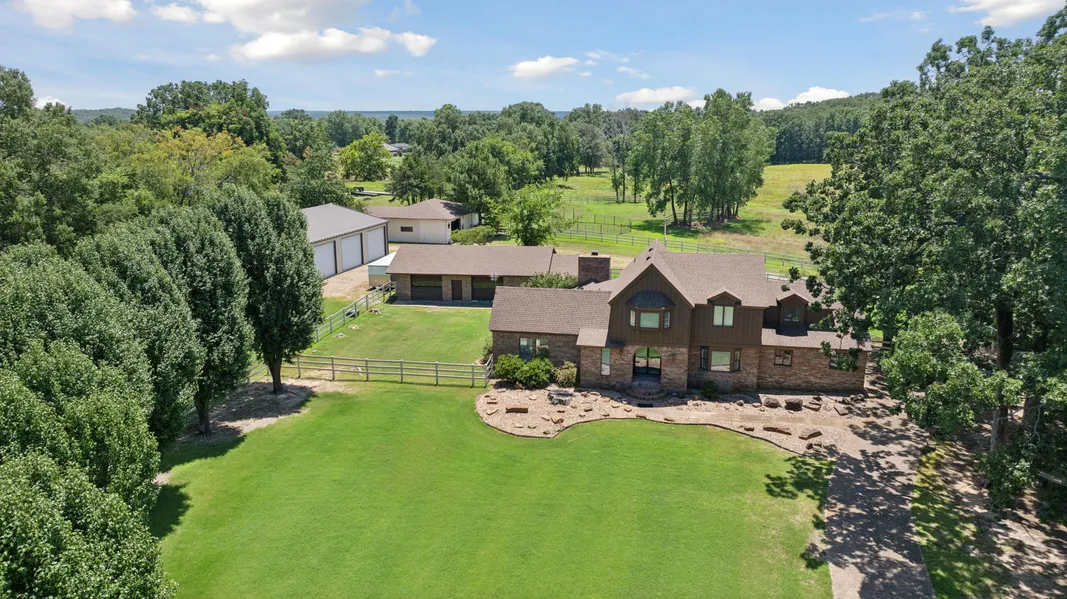 Welcome to your own private retreat in Pocola, Oklahoma! This beautifully maintained 3-bedroom, 2.5-bath two-story home is perfectly situated on approximately 22 stunning acres, offering peace, privacy, and a lifestyle of rural elegance. A gorgeous stone-accented concrete driveway lined with stately Bradford pear trees sets the tone as you arrive. The main home is fenced with attractive tan vinyl for added curb appeal and functionality. Spend your summers relaxing or entertaining by the in-ground pool with an impressive rock patio, while the spacious 32x36 pool house with its own bathroom and laundry room offers added versatility as a potential guest suite or game room. Equestrian and livestock enthusiasts will appreciate the 50x60 fully equipped shop with a bathroom and three overhead doors, a horse barn with three stalls, an additional 12x20 paddock with two stalls, a 6-horse programmable walker, and functional cattle working pens. A picturesque pond adds both beauty and utility to the land. This property is the ideal blend of comfort, convenience, and country charm secluded, serene, and ready for your dream rural lifestyle. Don't miss this rare opportunity to own a turn-key homestead with outstanding infrastructure and endless potential! 10 Minutes from I-540 and Fort Smith, Arkansas