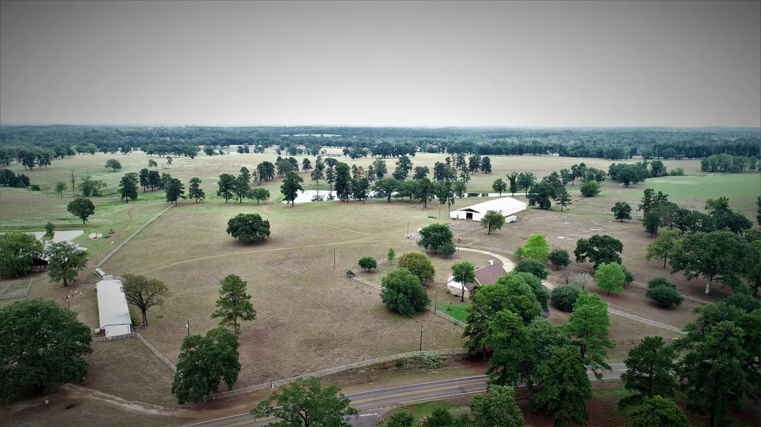 Reduced 405.32 Acre East Texas Ranch ready to turn livestock out and go to work. Headquarters house is a 4 bedroom, 2 1/2 bath, approximately 2600 sq ft two story home. There are 4 barns on property - Main barn is 18,720 sq ft, Hay barn is 8000 sq ft, Equipment barn is 4800 sq ft and Feed barn is 1400 sq ft. Two sets of working pens on property - one is located in middle of property with 5 pastures connected. The other is at front of property with load out chute and pond access to each pen for water. There are several lakes and ponds on property for cattle to water and are stocked with fish. Pasture land is primarily Coastal Bermuda-grass with a few areas of Common Bermuda grass. Property is set up for a cattle operation but could be used as any livestock operation with a few minor adjustments. There are not many places set up like this one for the ease of operations with cross fences and runs to working pens.