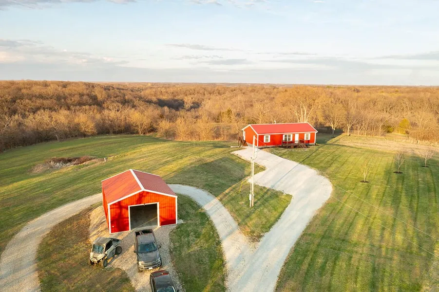 Welcome to your dream property in Ray County, Missouri. Nestled on 30 acres, approximately ten miles north of Richmond, this homestead offers country living at its finest. At the end of the long gravel driveway, you will find a cozy home and a spacious shop. The front porch of the house is great for enjoying the sunset, and the back deck is the perfect spot to watch the resident deer herd feed in the evenings. Built in 2017, this 1,200 square foot home offers an open-concept living/kitchen design, ideal for entertaining or relaxing with the family. The three bedrooms and two full bathrooms are sure to accommodate just about any family size. You will find modern laminate flooring and an unfinished basement that could give additional living space and another bedroom. A 30'x24' shop is complete with concrete floors and 120/240v. Surrounding the home, you have 4 open acres with an opportunity for additional income by planting row crops or food plots for the wildlife. With a little clean-up, the 0.25 acre pond can be a great place to spend summer evenings fishing with family and friends. Whether it's a weekend getaway or a place to raise a family, this country home is sure to please. Call Chad Miller today to schedule a private showing and make 40476 East 180th Street your new address. Owner/Agent Location: