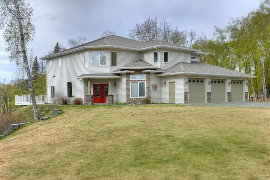 TULCHINA POINTE CUSTOM VIEW HOME! Granite counters,Travertine floors,in-floor heat,3 br,3 ba + office,formal dining & excercise room.Paved parking,playground,sprinkler system,sledding hill & access to Refuge.Master has private doors to deck,HUGE walk-in-closet & bath sanctuary w/jacuzzi & tile shower. Studio/guest quarters has storage garage under & boardwalk to private deck.FREE HOME WARRANTY!