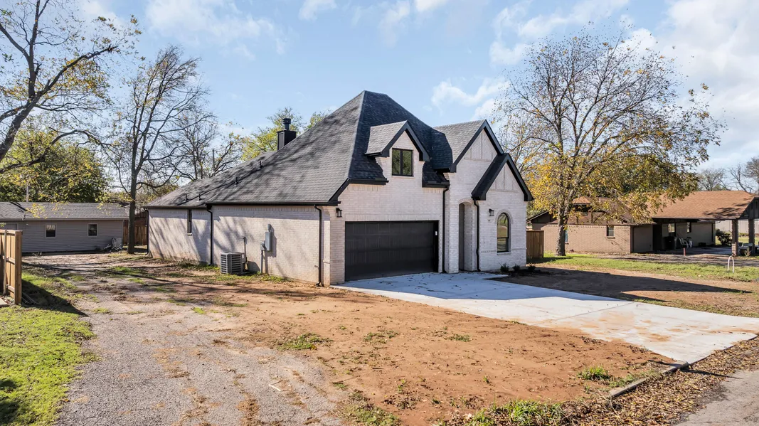 Beautiful new home built in the City of Marietta with the modern high-pitched roof and the special new look. It has all the extras you would want in a new built home if you built it yourself. The kitchen area is open to the living area with a center island for sink, dishwasher and extra storage and also an eating area with Corian counter tops, beautiful white tile, cabinets and walls. All the cabinets pulls and hinges and light fixtures are black. Very striking. The master suite has a unique raised ceiling and bay window. The master bath is huge with two shower heads for his and hers and glassed walls and doors with designer tile, double sink vanity, and a huge master closet with lots of built-ins complete the bath. Gorgeous!
