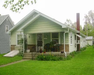 Single story home with two bedrooms, one bath, kitchen with utility area, family room with fireplace, dining room opens to living room, partial basement and one car detached garage.