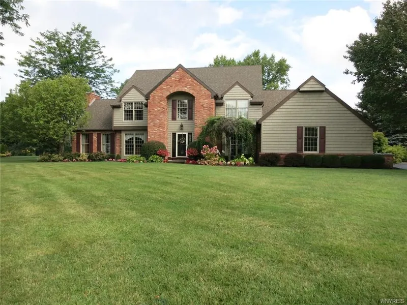 Stunning private grounds enhance the beauty of this 4 bdrm 2 full & 2 half bath home on over an acre. Spacious foyer w/ceramic flring. Frml DR w/crown mldg, hrdwd flring & french dr to stamped concrete patio overlooking the beautifully landscaped grounds. Spectacular country kitchen w/granite counters, walk-in pantry, Jenn-air gas cooktop w/grill, bltin double ovens, island, bay window at eating area & hrdwd flring. LR/library w/bltin cabinetry, 1st flr office w/hrdwd flring. French drs to FR w/cathedral ceiling, gas fireplace, heated flring & sldg drs to 2nd stamped concrete patio & gazebo. Mstr suite has tray ceiling, bltin cabinetry, window seat & walk-in closet. Mstr bath w/skylite, whirlpool tub & sep shower. Nat wdwrk, 1st flr laundry, 3 car garage w/epoxy flring & hot & cold water. Underground sprinkler system, six panel drs, Two A/C units, sump pump w/water back-up & shed w/electric. Updates include roof, HWT, furnace , one A/C unit, siding.