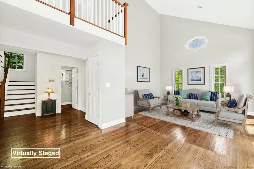 Enjoy the ultimate lakeside lifestyle at Scatacook Shores, where this custom contemporary-colonial residence is situated on 1.64 acres of beautifully landscaped property, with seasonal sunset and lake views from the expansive deck and Primary Suite balcony. With over 3,000 sq feet of living space, this multi-level home features 4 bedrooms, 3.5 baths, a whole house 20,000-watt automatic standby generator powered by 3, 120-gallon propane tanks. The upper-level loft/office has removable steps to the "widows walk". The walk-out lower-level is a perfect guest suite with a bedroom, family room, full bathroom, laundry room and an "All-Nighter" steel plate energy-saving Big Moe wood burning stove. The primary living level features a striking stone fireplace, hardwood floors, and floor-to-ceiling windows and French doors that lead out to the expansive deck views. The formal dining room boasts crown molding and a custom oil lamp chandelier, while the eat-in kitchen has light wood cabinetry, stainless appliances, counter seating, and deck access. Experience the ultimate in relaxation in the third floor's primary suite, featuring a walk-out balcony with sunset views, a walk-in closet, and a luxurious full bath with soaker tub and double sink. The wraparound deck, equipped with a convenient ramp, allows for easy access to the yard, making it simple to take your dog outside while enjoying the stunning views from the backyard