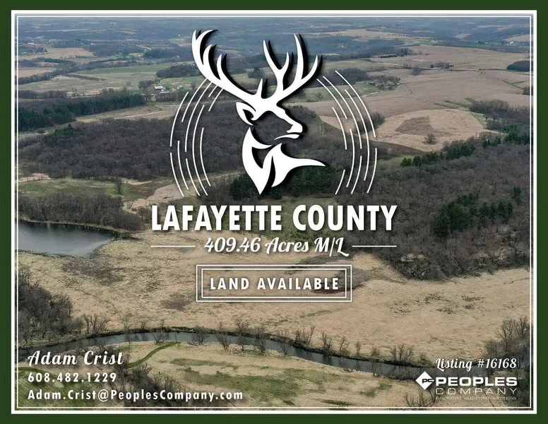 Peoples Company is pleased to present 409.46 acres m/l in Lafayette County, Wisconsin. This is truly a unique recreational farm in southwest Wisconsin. This farm has a little something for everyone with high-quality tillable farmland, multiple ponds, loads of recreational land, over one mile of Pecatonica River frontage, and multiple building sites that offer a 360-degree view of the property. Recreational properties of this magnitude don’t hit the market very often.