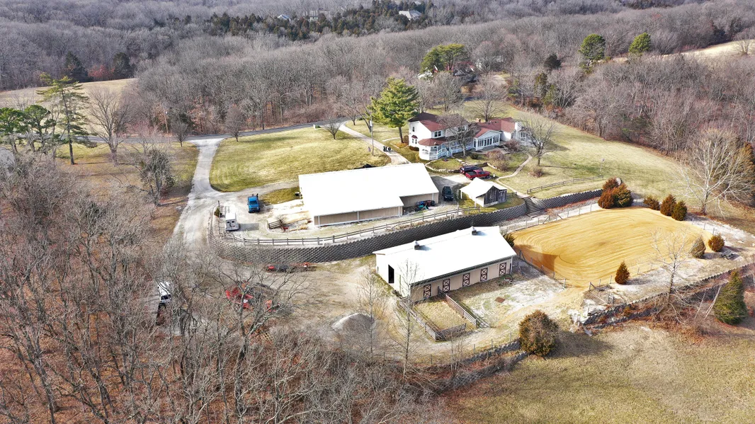 Reduced Price!! Here is your chance at Privacy and Freedom to live out your days with potential for enjoying horses or a business with a large hobby shop, stable and 2nd home attached to the 2- story Victorian home w/charming wrap around porch in back & stately pillars in front. Addition to home includes large sunroom w/wood beams & barrel ceiling, has access to 2 bed 2.5 bath mother-in-law or guest house w/walk-out LL & many exits to balconys & patios. Carved into the country-side this 9.5 acres of rolling hills has been excavated w/precision, details to drainage & large buildings all with a vision of a place for everyone to enjoy. Greensfelder park and its equestrian trails sit just across Hencken Rd Ride there from your 5 stall barn w/dutch doors & foaling stall, hot/cold wash, heated tack room, heated viewing area to your 80'x90' Outdoor arena. Stable and arena built in 2006 along with large retaining walls 2nd well & electric to stables. Pasture and dry lots w/wood or wire fencing, plenty of trailer parking and turn around. 1 acre pond is stocked. Car collectors, mechanic or body workers will love the 10+ car garage heated/cooled w/ thick concrete floors, office & full bath. Rockwood schools and spectrum internet. Sellers are motivated and have had pride of ownership for the 30 years of living here.