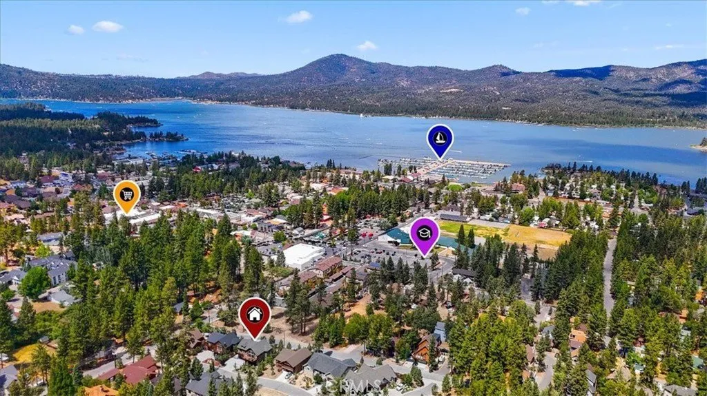 Gorgeous custom-built home just steps from Big Bear Lake Village, featuring exclusive lake access with your own private dock at Pleasure Point Marina. Nestled in an upscale neighborhood, this fully furnished 2-story well-maintained home features 4 bedrooms and 3 full baths, designed with a reverse floor plan to maximize stunning views. Enjoy multiple decks with mountain, trees and peek-a-boo lake views, plus a beautifully landscaped yard space with covered patio, fire pit and fenced backyard…perfect outdoor entertaining! The light-filled living room boasts vaulted ceilings and an open floor plan with custom mountain features giving you all those Big Bear vibes! The upper level includes the primary suite, two additional bedrooms, and a full bath. The lower level offers a family room with wet bar, an additional bedroom, a full bath, and easy access to the backyard space and garage. Set in an excellent neighborhood on a level street with ample parking, walking distance to restaurants, shopping, events, parks and marina, this home has all that you’re looking for in your mountain dream home!