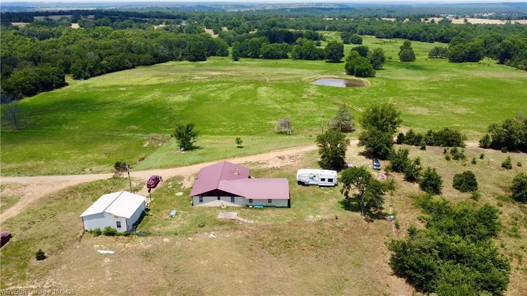 "Property with a phenomenal view. If you are seeking privacy and seclusion with quick access to town, this property is perfect for you. The home is elevated on a hill, providing a stunning view of the surrounding mountain ranges and valleys. With 140 acres of land, you can have your own working cattle farm, enjoy hunting whitetail, or go fishing in one of your 4 private ponds. The home is in need of repair, offering a great opportunity to make it your own. Bring your vision and see what this property has to offer. The land is fully fenced and has been used to run cattle until a few months ago. The original part of the home is about 2000 SF. An addition was added to the home and not completely finished. This addition would offer several bedrooms and a bonus room. Some of the rooms are more finished than others. Additionally, there is a metal shop building/garage, storm shelter, and some remaining cattle pens. A second driveway leads to a second home site that is also not finished. This could provide the potential to finish it and turn it into an investment property. There are great possibilities with this property, and it is a motivated sale. All offers will be considered. Bring your ideas and vision and schedule a showing today.
