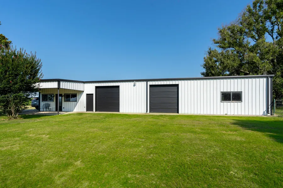 Luxury East Texas Ranch with Barndominium! 80.084 acres of improved pasture ready for grazing your cattle or horse operation. 4000 square foot Barndominium with approximately 1650 square feet finished out with 2 beds 2 bath with open kitchen, dinette and living room with high end finishes, remainder of building consists of open area for storage, parking or party barn. The home overlooks a private 6 +/- Acre lake with covered pier stocked with bass, bream and baitfish. Cattle working pens and loafing shed is connected to the back of the building with room to set up several stalls for horses. Covered RV area connected to the building with 35 amp breaker and sewer. You must see this property to appreciate all it has to offer.